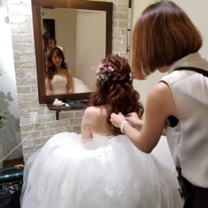 結婚式のリハーサルで、ヘアメイクさんが来てくれました!